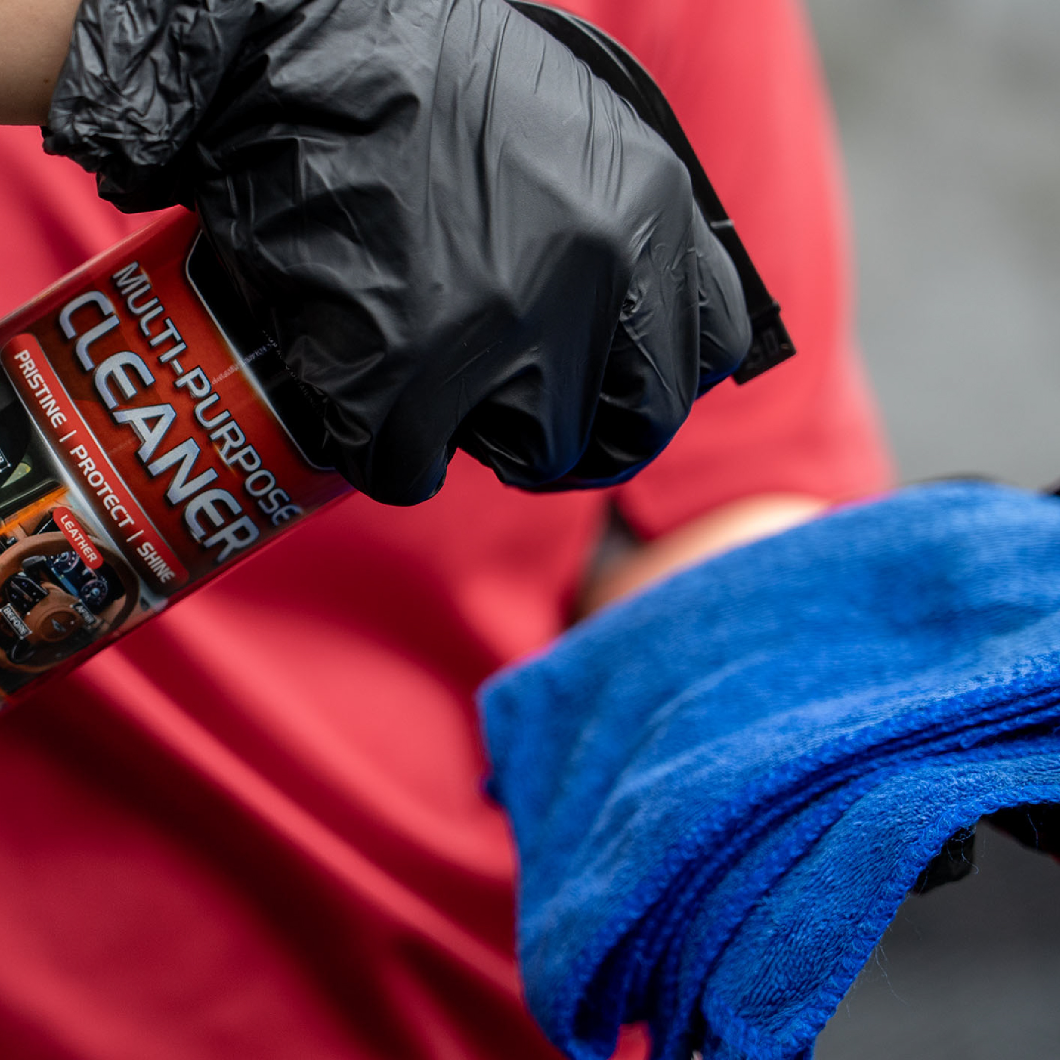 Removes dirt, oil, and stains from dashboards, seats, engine bays, wheels, and more.